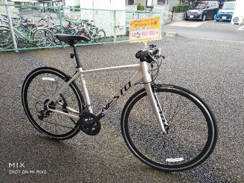 こんにちは東越谷店です。 本日はこちらのアウトレット車のご紹介です。 こちらはフラットタイプのロードバイクで、 特徴はこのカラーです。 こちらはロウシルバーという仕上げで、1台1台仕上がりが異なる個性的なカラーです。 限定1台でサイズは 465mm(160c…