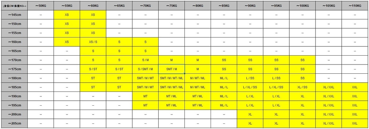 メーカー推奨の表からすると私の身長と体重ではSかMとなっています。